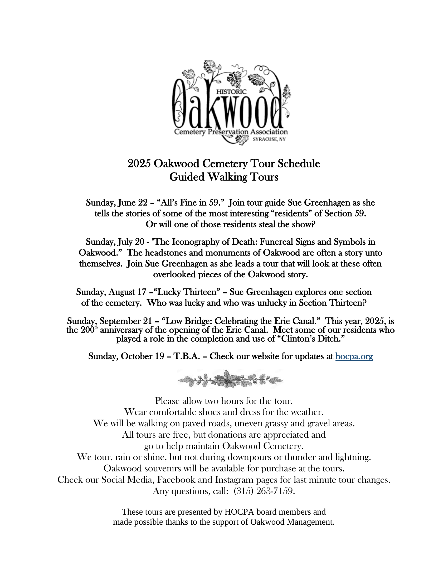 2025 Tour Schedule
